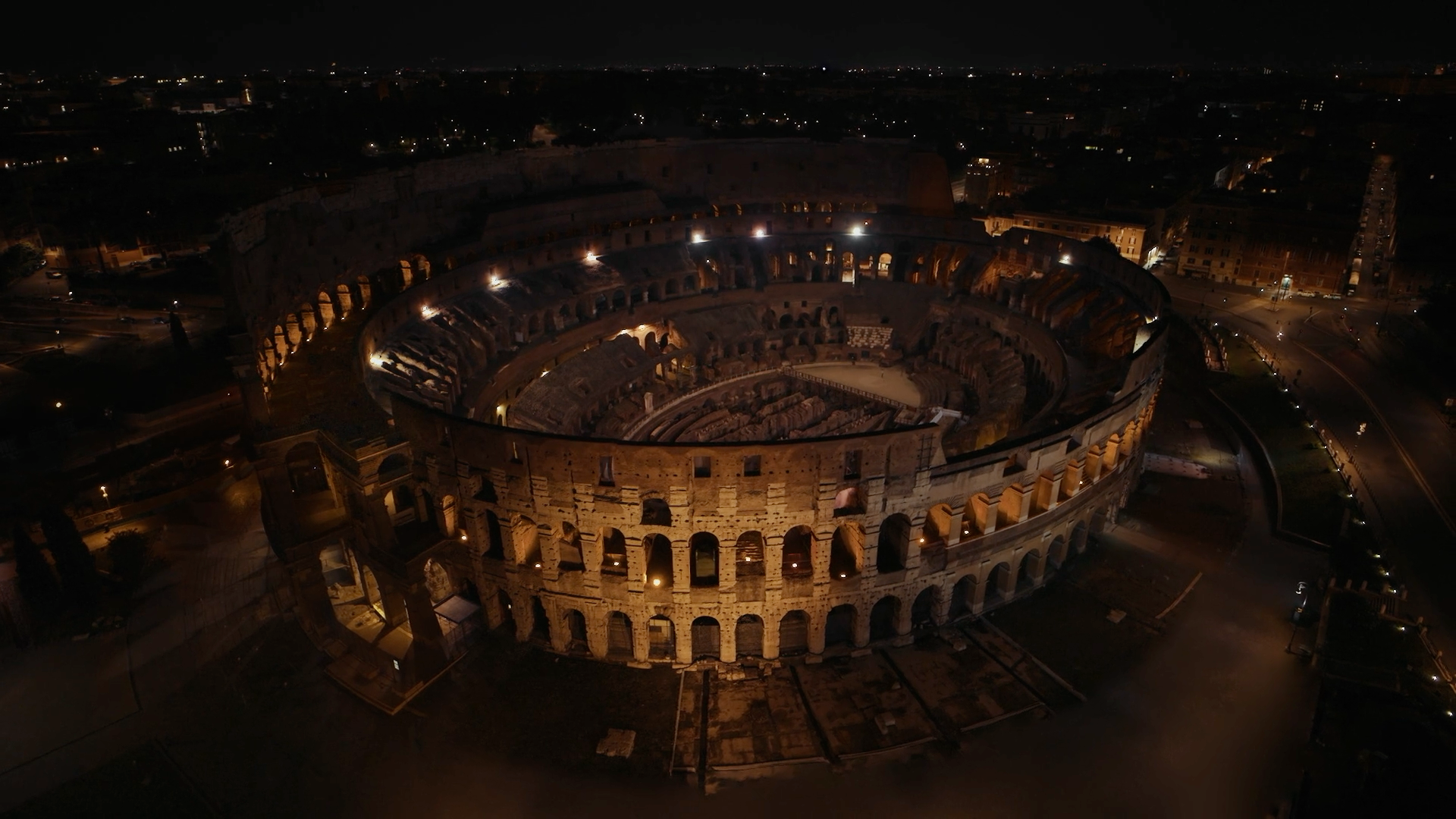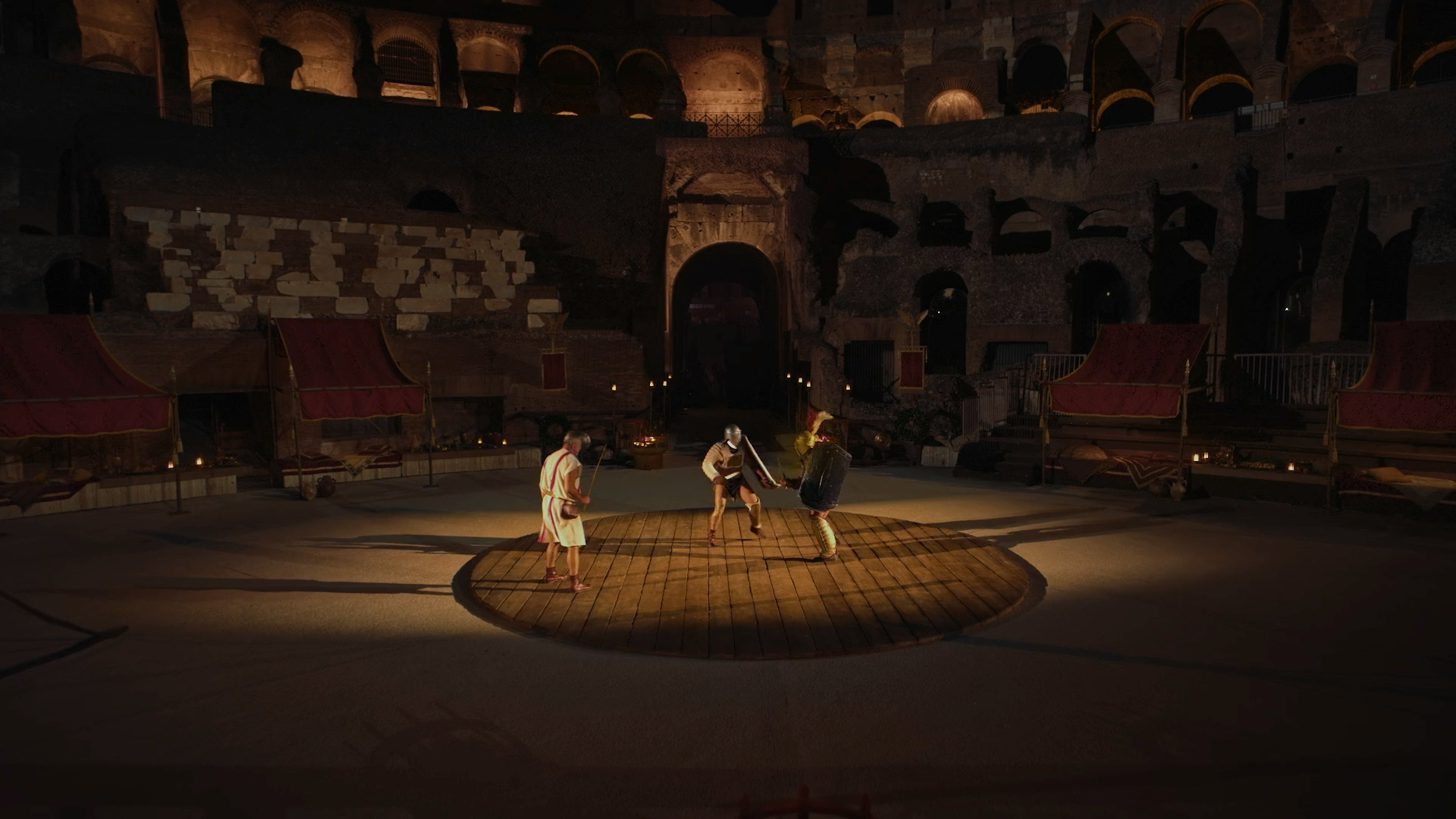 The result is a piece that feels epic in scale and authentic in texture — a modern production set against a 2,000-year-old backdrop. Not a studio recreation. The real arena. The real Colosseum.